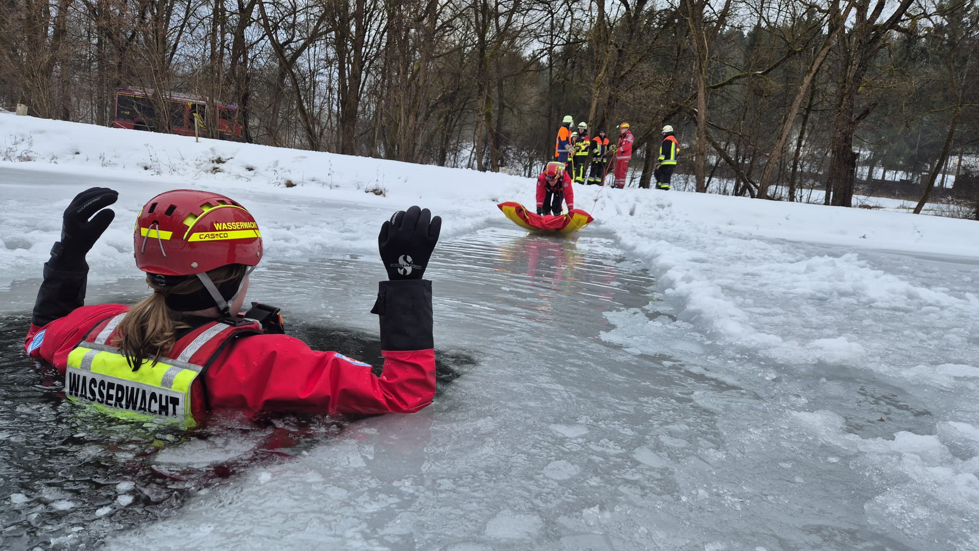 Eisrettungsübung mit der Feuerwehr Auerbach